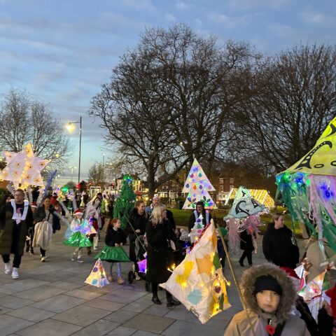 The Annual Town Centre Christmas lantern Parade returns with the festive spectacle of families and their handmade lanterns parading around the market place. Local schoolchildren and their families have been busy making small and large scale paper and willow lanterns in the weeks leading up to the parade.
